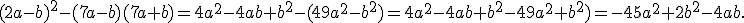 Доведення 5. Спростимо ліву частину тотожності, застосувавши формули скороченого множення "квадрат різниці двох виразів" і "квадрат суми двох виразів" та розкриття дужок, а потім зведемо подібні доданки.